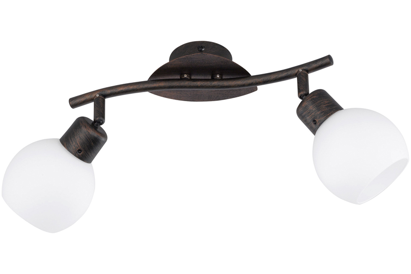 Спот Trio 824810228 Freddy изготовлен из металла и стекла. Основание светильника окрашено в коричневый цвет, плафоны белые.